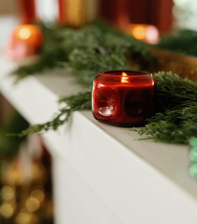 The 5 oz Yuzu Woods candle blends bright yuzu citrus with earthy evergreen woods in a versatile compact size. Perfect for gifting or small-space décor, its red glass vessel repurposes beautifully as a stylish accent jar.