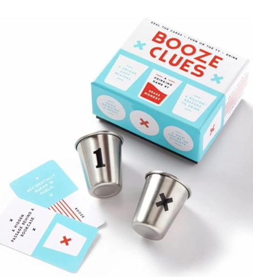 - GAME NIGHT FOR ADULTS - Booze Clues Drinking Game Set from Brass Monkey finally provides you a way to drink and watch tv competitively, and drunkenly.