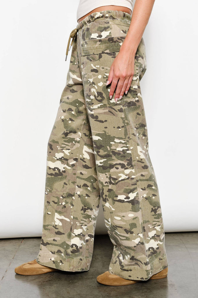 March to your own beat in the Camden Camo Print Pants—adventurous, laid-back, and ready for anything! These pants blend comfort and edge for the perfect off-duty look. - Classic camo print for a bold, adventurous vibe - Elasticized waistband for easy, pull-on comfort - Adjustable drawstring for your perfect fit - Functional pockets for all your essentials Fabric: 100% Cotton Perfect for boutiques curating cool, laid-back pieces! A must-have for customers who love effortless, edgy style.
