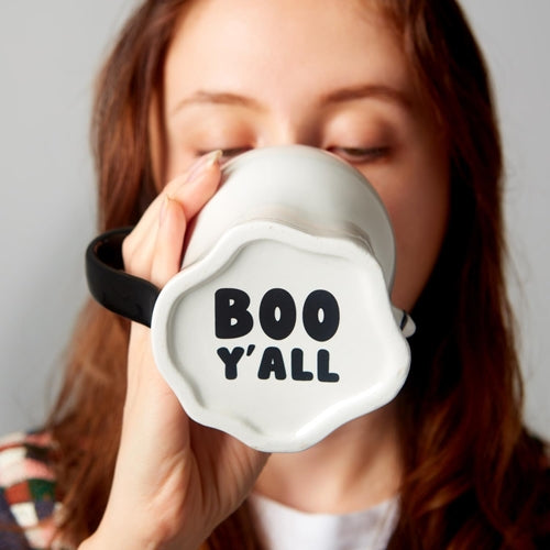 Sculpted Ceramic Mug with "Boo Y'All" message on the bottom of the mug. Holds 15 oz.