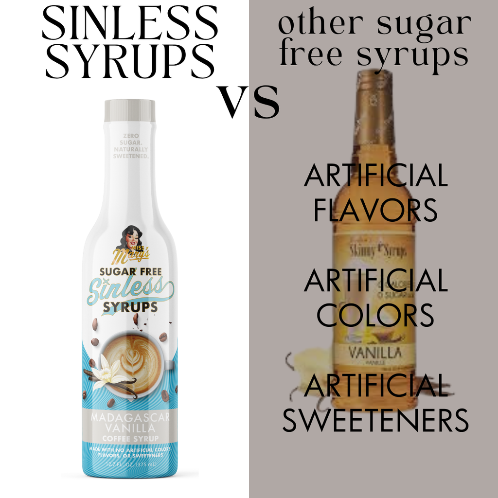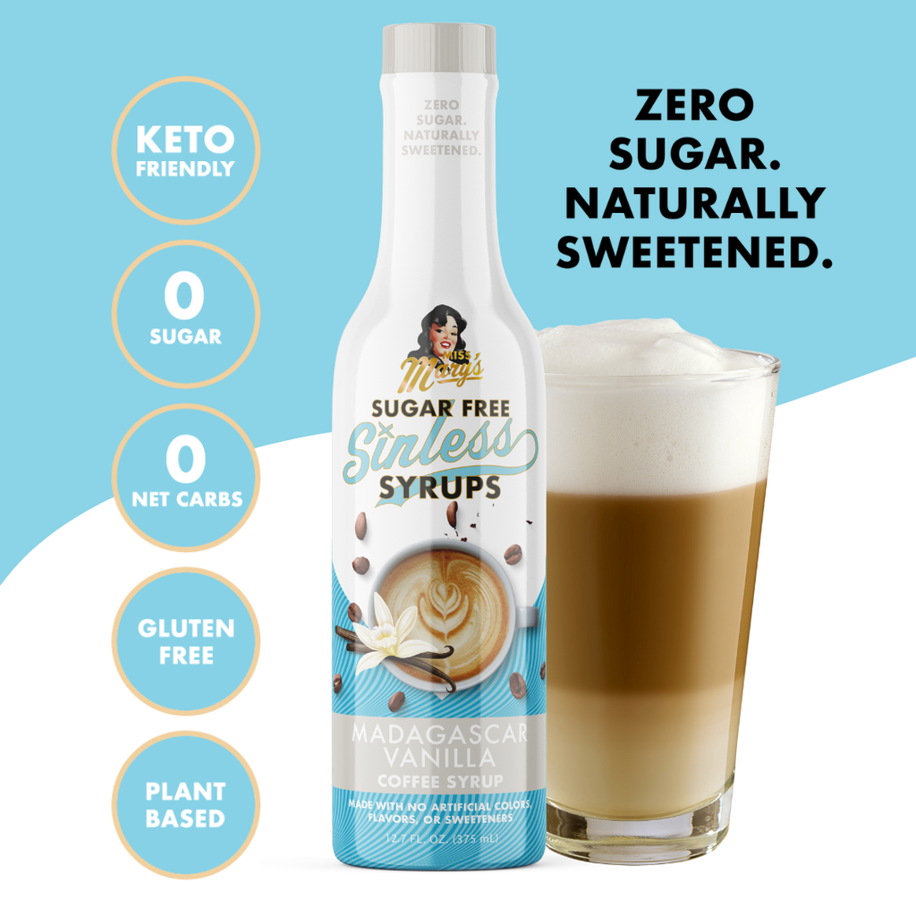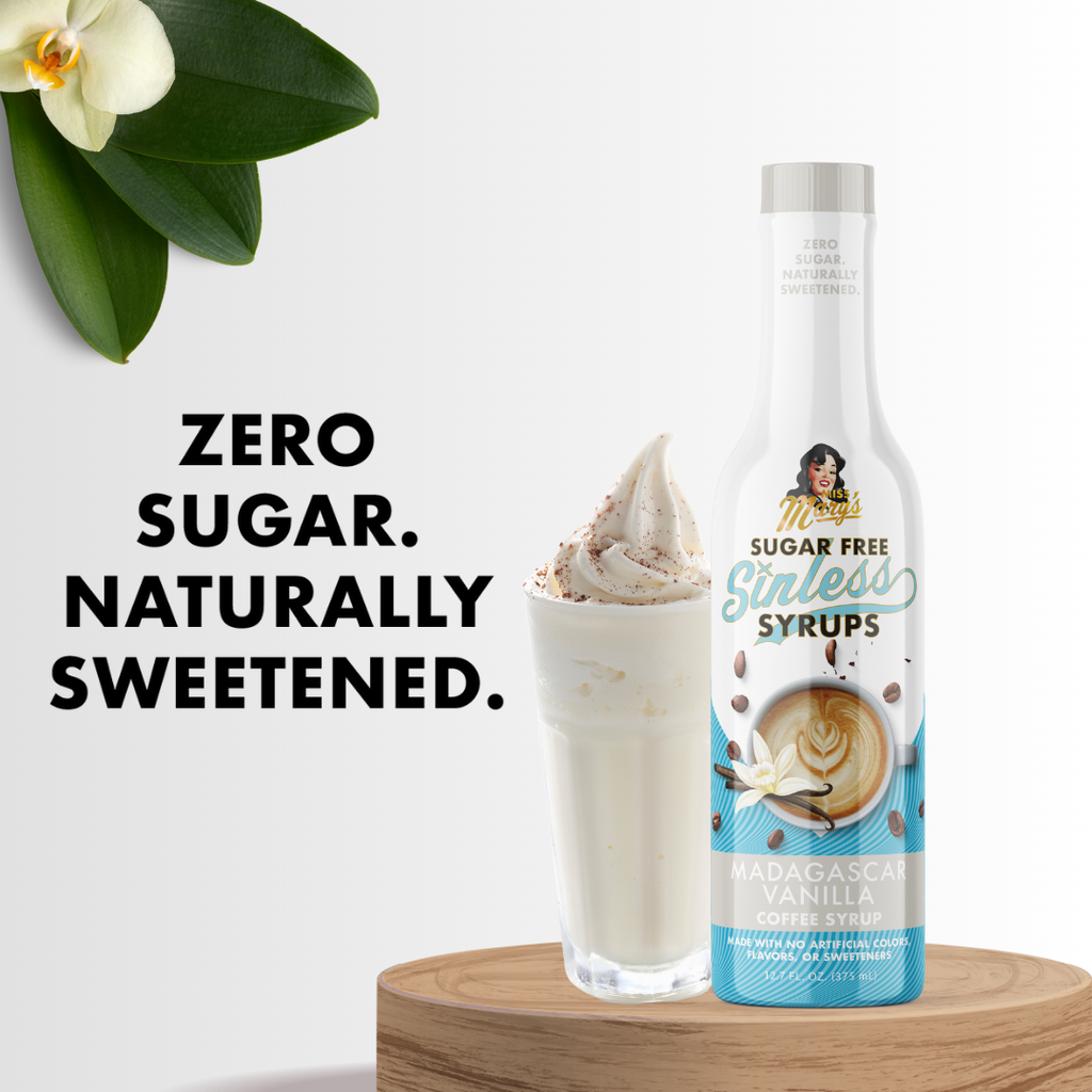 Pack your taste buds. The exotic flavor of the Madagascar Vanilla Sinless Syrup will transport you. Infinitely versatile, this sugar-free syrup will beg you to experiment with it. Madagascar Vanilla gives new meaning to 'bright eyed and bushy tailed.' Sugar Free Sinless Syrups are made with NO ARTIFICIAL ANYTHING. Capitalize on the growing trend of people consciously choosing clean ingredients by offering Sinless Syrups - heavenly flavor, zero sugar, all natural ingredients - to your customers. Made with All Natural & Organic Ingredients Gluten Free MSG Free No High Fructose Corn Syrup No Artificial Colors No Artificial Flavors Plant Based Keto-Friendly Sweetened with Organic Stevia & Monk Fruit Size: 375ml