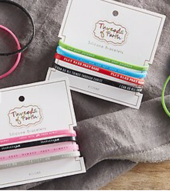 This set of thin silicone stretch bracelets comes with 4 uniquely colored styles.